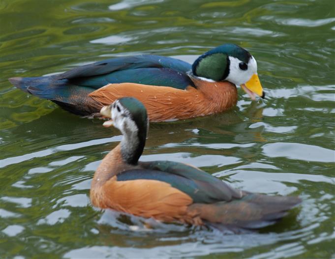 Pair of African pygmy geese, note how obviously heavy 'in lay' the female is.