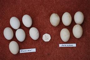 African and Indian Pygmy Goose eggs for comparison.