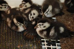 Male African pygmy geese take a very active part in nest site selection, a variety of raised nest boxes should be provided but the requirements do not appear to be particularly exacting. As the pair come into breeding condition the male will start flying up to nest boxes and calling quite loudly and very soon afterwards the female will also start flying up to the chosen nest box. The males do not actually enter the nest box but really do appear to actively encourage the female to inspect the box. Once a nest box has been selected the female will very quickly start to make a nest. With most species of waterfowl the female will make little more than a depression ,scrape, one or two days prior to laying the first egg. Female African Pygmy Geese make quite a deep scrape in the nest box and if straw is available in the box they will line the scrape and effectively make much more of a nest prior to laying the first egg than any other species of waterfowl that I have kept.