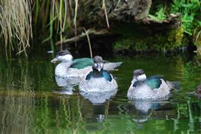 Trio of Green pygmy geese, the male is only a year old and full breeding plumage is not attained until the second year.