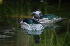Breeding the Green Pygmy is something that I have yet to achieve, in June and July they become very vocal and display almost constantly and will fly up to nest boxes and show all the signs of wanting to breed but to date they have not actually produced any eggs. The males appear to take a significant part in the choosing of nest sites and will stand on nest boxes and very positively call the females to the box. While I have not kept my Green Pygmy Geese with any other species their general behaviours strongly suggests to me that when in breeding condition they may be quite aggressive to other waterfowl and I have observed aggression between my females and certainly have suspicion that the females when in condition may also be aggressive to males that are not in condition.