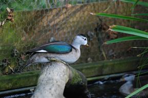 Off all the Pygmy geese the Indian would appear to be the least vocal, the females do make a variety of excitable cries but except during the breeding season it is very unusual for the males to call. However when breeding the males do have a very distinctive and pleasant call that they make while displaying and their display is quite something. They pose to the females with their head bent forward and their bill vertical to the water and they then partially raise their wings to present their iridescent green wing coverts to maximum effect. Rather disappointingly the males retain their breeding plumage for a relatively short time but a displaying male Indian Pygmy in pristine condition is quite a stunning site. The demure females do not appear to lay until they are two but can then be expected to do so relatively easily and two or three clutches of relatively small oval dull white eggs can be expected. The clutch can be quite large and anything from eight to twelve eggs can be expected that take approximately 23 days to incubate. A variety of nest boxes should be provided and they are particularly eager to use hollow logs, ensure that there is ample perching space immediately in front of the nest box because the females do get very heavy when laying and appear to be less agile in flight so it is advisable to make entry to the nest box relatively easy.