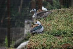 Indian Pygmy ducklings are easier to artificially rear than Africans, after a reasonable period of resting pot hatch they should be introduced to a brooder that provides access to water that thy can swim on. Crumbs and some of the floating micro rearing crumbs should e provided on the water surface. Once these are being consumed from the water surface try tempting them to eat dry crumbs at the waters edge and again a soon as these are being taken move the feed further away from the water and eventually provide in a shallow pan. Once the ducklings are taking dry feed it is easier to keep their swimming water very clean. Young Pygmy geese appear to have surprisingly dense down and every effort should be taken to keep the ducklings as clean as possible so that the proofing is not impaired. The duckings will readily spend most of their time on water only leaving to feed and if this can be achieved they grow rapidly and rearing to fledging is relatively straight forward. From a very young age some finely chopped lettuce or spinach should be provided on the water surface, this is usually taken with relish. If there is difficulty getting the ducklings to initially feed some mini mealworms can be used to tempt them but I would recommend only doing this as a last resort, once they have started taking live food it can be quite challenging to wean them onto dry feed.