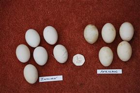 Indian and African pygmy goose eggs, the eggs are very similar in size and the Indian eggs are much whiter and so not have the wax coating that is typical of Africans and more obvious on the first eggs of the clutch.