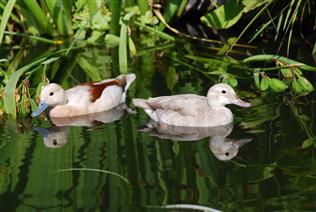 Due to their small size Ringed Teal can be easily predated and this perhaps makes them particularly suitable for keeping in an aviary where a higher degree of protection can be provided. If being kept in an aviary they can also be maintained full winged and they can then be seen perching or flying up to elevated nest boxes that adds yet more interest. They readily become very tame and are a delightful duck to keep.