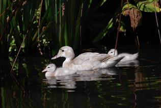 Once established the Ringed Teal have a very strong pair bond and will never be seen far apart and consequently hybrids with other species are uncommon. The clutch size can vary significantly from eight to fourteen eggs, ten to twelve being very normal, the highly glossed pure white eggs take 26 days to incubate and the ducklings are adorable from the outset, they are invariably steady and very easy to rear on duck or poultry starter crumbs. They grow rapidly and the females can easily be distinguished in their first plumage having the distinctive white eye stripe that remains with them into adult plumage.